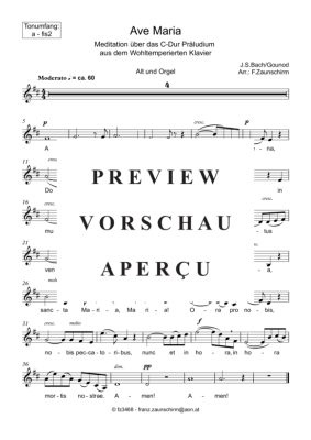 Ave Maria a - fis2 - Sheet Music for Alto Solo and Organ Playback Bach/Gounod