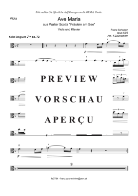 Ave Maria (Viola Solo + Klavier-Playback) - Sheet Music for viola + piano Franz Schubert (Zaunschirm)