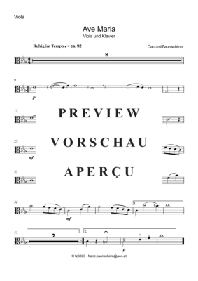 Ave Maria (Viola Solo + Klavier-Playback) - Sheet Music for viola + piano Giulio Caccini (Zaunschirm)