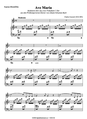 Ave Maria - Sheet Music for recorder + piano Charles Gounod (1818-1893)