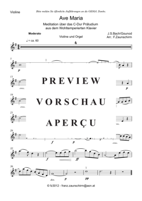 Ave Maria - Sheet Music for Violine Solo + Orgel-Playback Bach / Gounod (Zaunschirm)