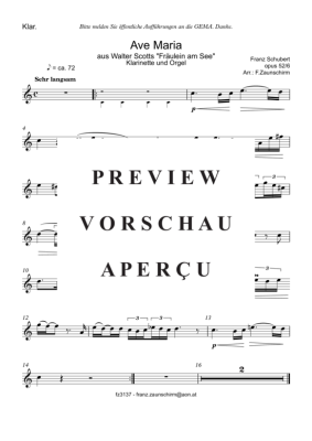 Ave Maria - Sheet Music for Klarinette in B Solo + Organ-Playback Franz Schubert (Zaunschirm)