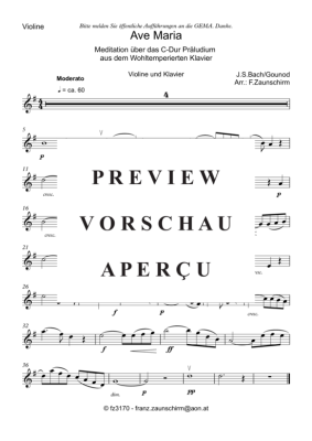 Ave Maria - Sheet Music for violin solo and piano playback Bach / Gounod (Zaunschirm)