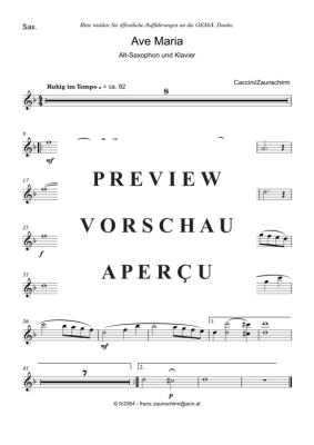 Ave Maria - Sheet Music for alto saxophone solo + piano playback Giulio Caccini (Zaunschirm)