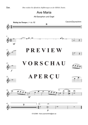 Ave Maria - Sheet Music for alto saxophone solo + organ playback Giulio Caccini (Zaunschirm)