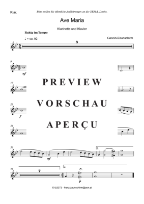 Ave Maria - Sheet Music for Klarinette in B Solo + Klavier-Playback Giulio Caccini (Zaunschirm)