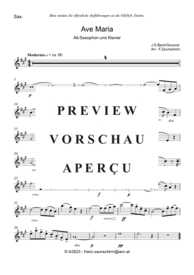 Ave Maria - Sheet Music for alto saxophone solo + piano playback Johann Sebastian Bach/Charles Gounod (Zaunschirm)