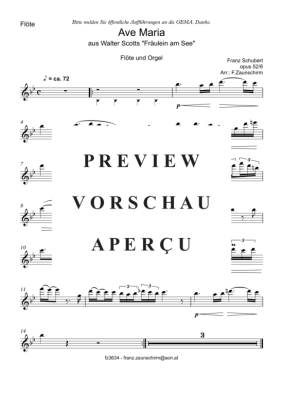 Ave Maria - Sheet Music for flute solo + organ playback Franz Schubert (Zaunschirm)