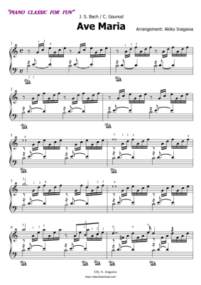 Ave Maria - Sheet Music for piano solo with fingering J.S.Bach - C.Gounod (arr. A. Inagawa)