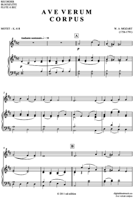 Ave verum corpus - Sheet Music for recorder + piano Wolfgang Amadeus Mozart (KV 618)