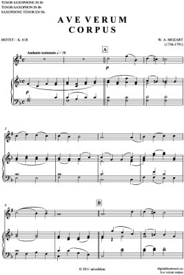 Ave verum corpus - Sheet Music for tenor sax + piano Wolfgang Amadeus Mozart (KV 618)
