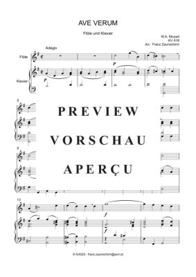 Ave verum (Querflöte + Klavier) - Sheet Music for G major Wolfgang Amadeus Mozart