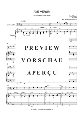 Ave verum - Sheet Music for Cello + Klavier Wolfgang Amadeus Mozart