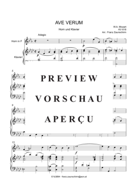 Ave verum - Sheet Music for horn in F + piano Wolfgang Amadeus Mozart
