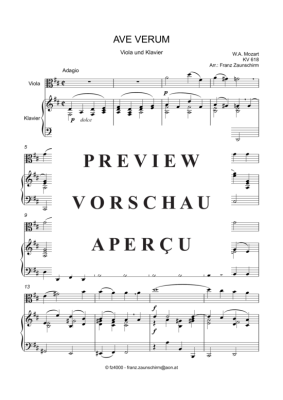 Ave verum - Sheet Music for viola + piano Wolfgang Amadeus Mozart