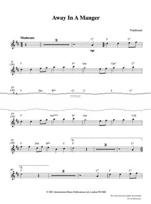 The traditional Christmas song Away In A Manger arranged for alto saxophone solo in digital sheet music format.