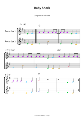 Baby Shark - Sheet Music for recorder duet traditional