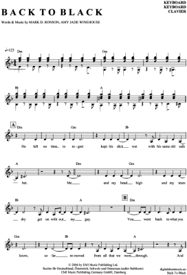 Back to black - Sheet Music for Keyboard Amy Winehouse