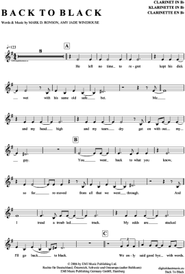 Back to black - Sheet Music for Clarinet in B-flat Amy Winehouse