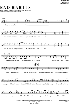 Bad Habits - Sheet Music for Posaune / Bariton Ed Sheeran