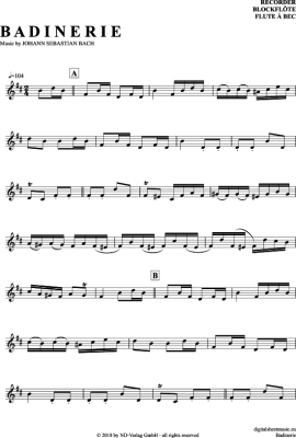 Badinerie - Sheet Music for recorder Johann Sebastian Bach