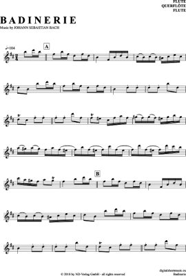 Badinerie - Sheet Music for transverse flute Johann Sebastian Bach