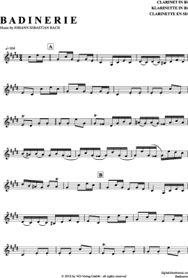 Badinerie - Sheet Music for Clarinet in B-flat Johann Sebastian Bach
