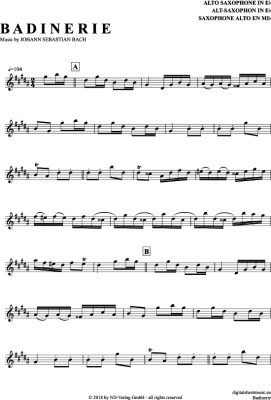 Badinerie - Sheet Music for Alto Saxophone Johann Sebastian Bach