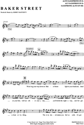 Baker Street - Sheet Music for Alto Saxophone Gerry Rafferty