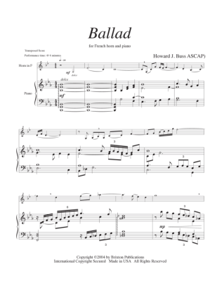 Ballad - Sheet Music for horn and piano Howard J. Buss
