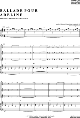 Ballade Pour Adeline - Sheet Music for flute trio + piano Richard Clayderman