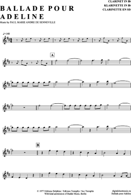 Ballade Pour Adeline - Sheet Music for Clarinet in B-flat Richard Clayderman