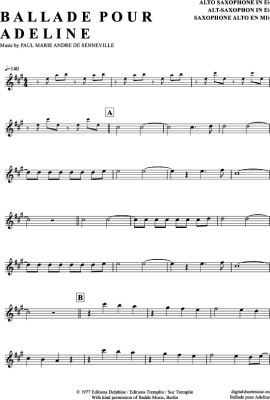 Ballade Pour Adeline - Sheet Music for Alto Saxophone Richard Clayderman