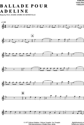 Ballade Pour Adeline - Sheet Music for violin Richard Clayderman
