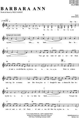 Barbara Ann - Sheet Music for Keyboard Beach Boys