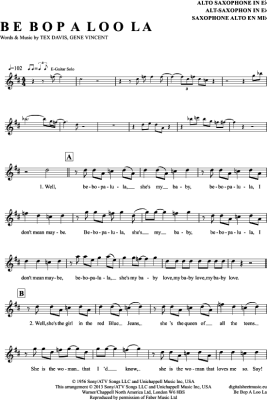 Be Bop A Lula - Sheet Music for Alto Saxophone Gene Vincent