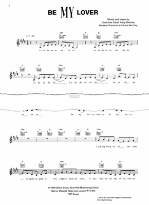 Be My Lover, as performed by La Bouche, arranged for voice with melody line, words and guitar chords and available to print instantly.