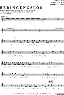 Bedingungslos - Sheet Music for Clarinet in B-flat Sarah Connor