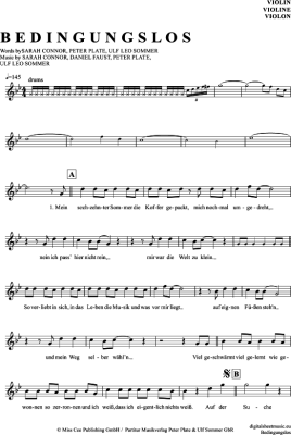 Bedingungslos - Sheet Music for violin Sarah Connor
