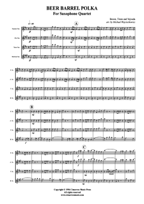 Beer Barrel Polka - Sheet Music for Saxophone quartet SATB Timm und Vejvoda Brown (Rosamunde)