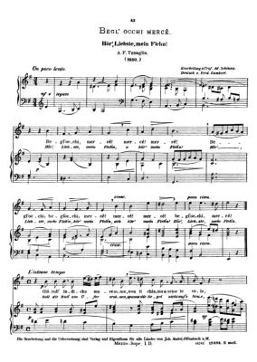 Begli occhi, mercè - Sheet Music for Medium Voice and Piano Antonio France Tenaglia
