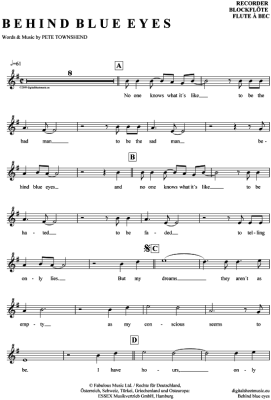 Behind blue eyes - Sheet Music for recorder Limp Bizkit / The Who