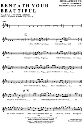 Beneath your beautiful - Sheet Music for Tenor Saxophone Labrinth feat. Emeli Sande