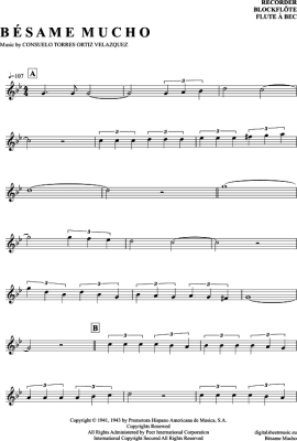 Besame Mucho - Sheet Music for recorder Bert Kaempfert