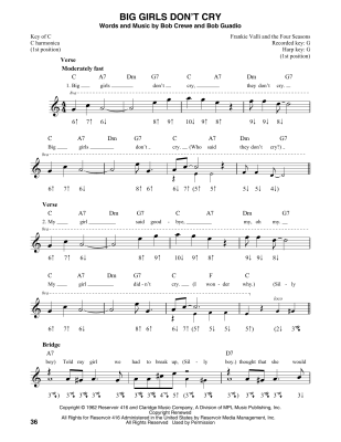 Big Girls Don't Cry - Sheet Music for The Four Seasons