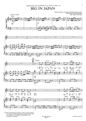 Big in Japan - Sheet Music for Piano and Voice Alphaville