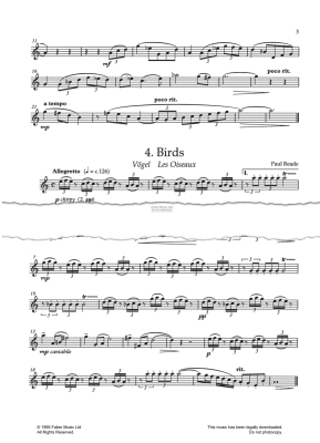 Birds, composed by Paul Reade and arranged for flute with piano accompaniment in digital sheet music format.