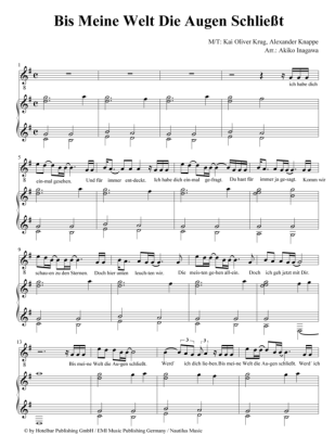 Bis Meine Welt Die Augen Schließt - Sheet Music for voice + piano Alexander Knappe und Joel Brandenstein