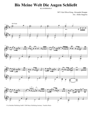 Bis Meine Welt Die Augen Schließt - Sheet Music for Piano Solo Alexander Knappe und Joel Brandenstein