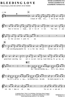Bleeding Love - Sheet Music for Tenor Saxophone Leona Lewis